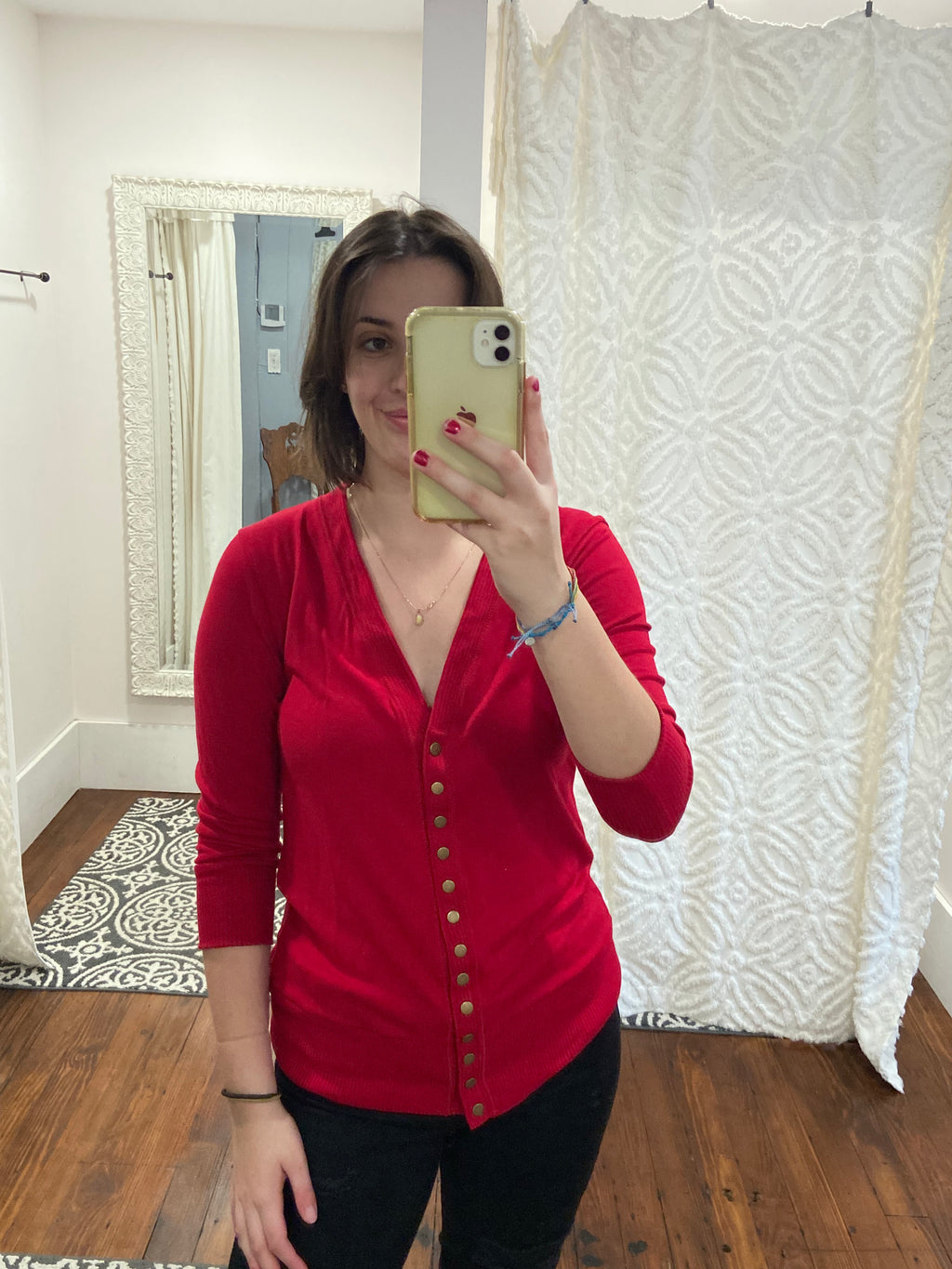 Snap Button Sweater Cardigan 3/4 Sleeve