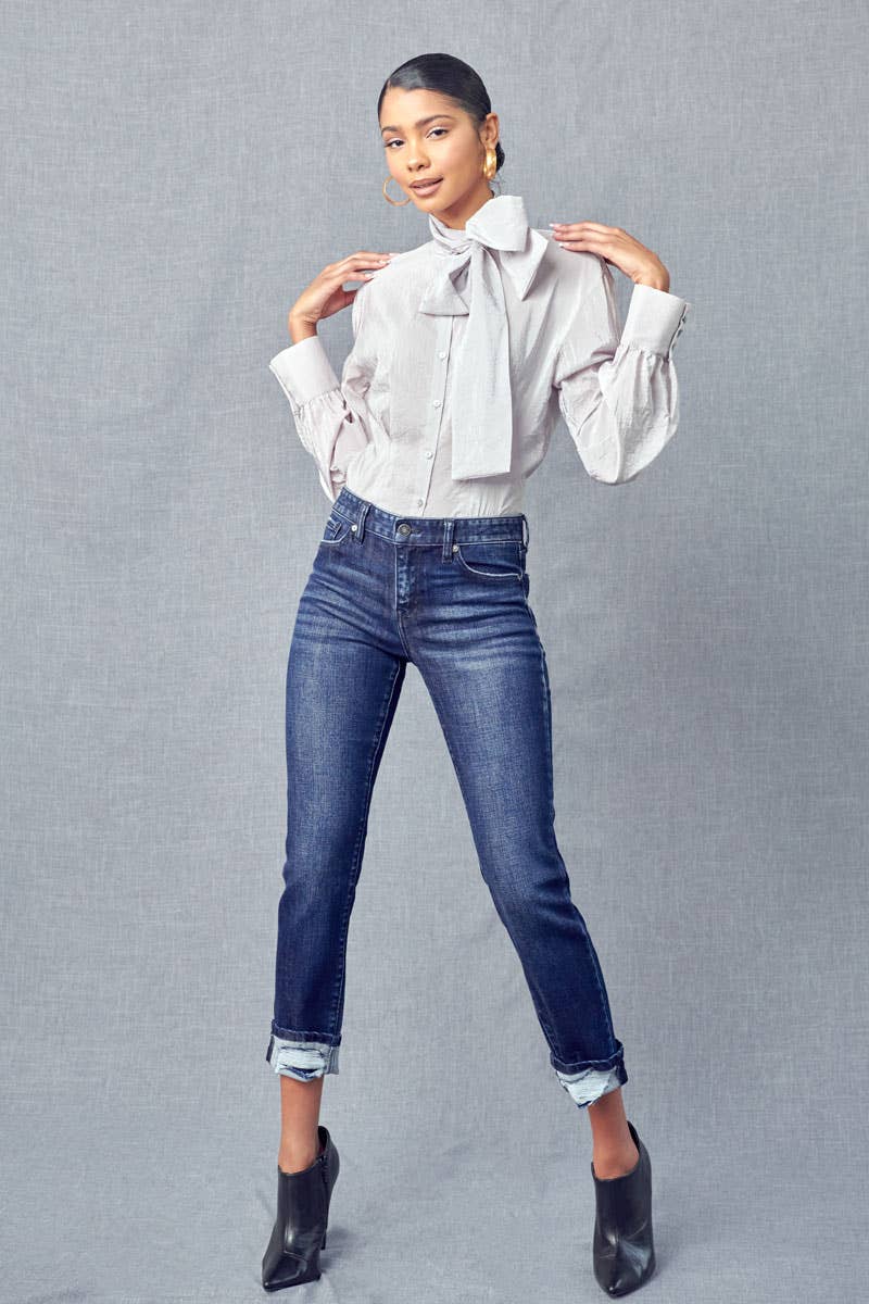 Kancan Cane Mid Rise Slim Straight Leg Jean